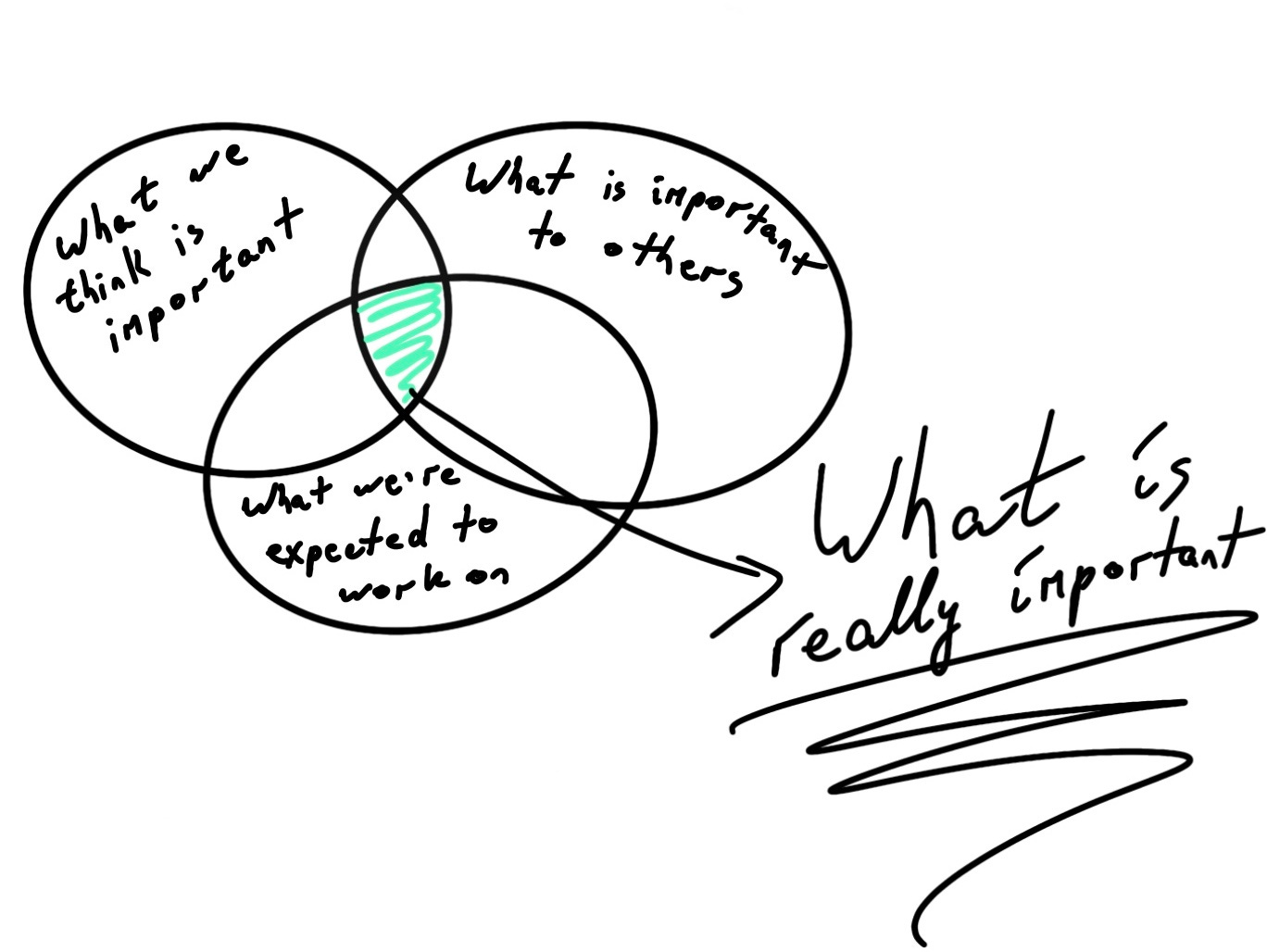 Let’s focus on the “what”. We might think that something is the biggest problem that needs to be addressed just because we see only part of the whole picture. We need to align within the team first on what’s that we need to work on. And to do that, we need to make sure we pay attention to what’s top of mind for others and what they want us to do.